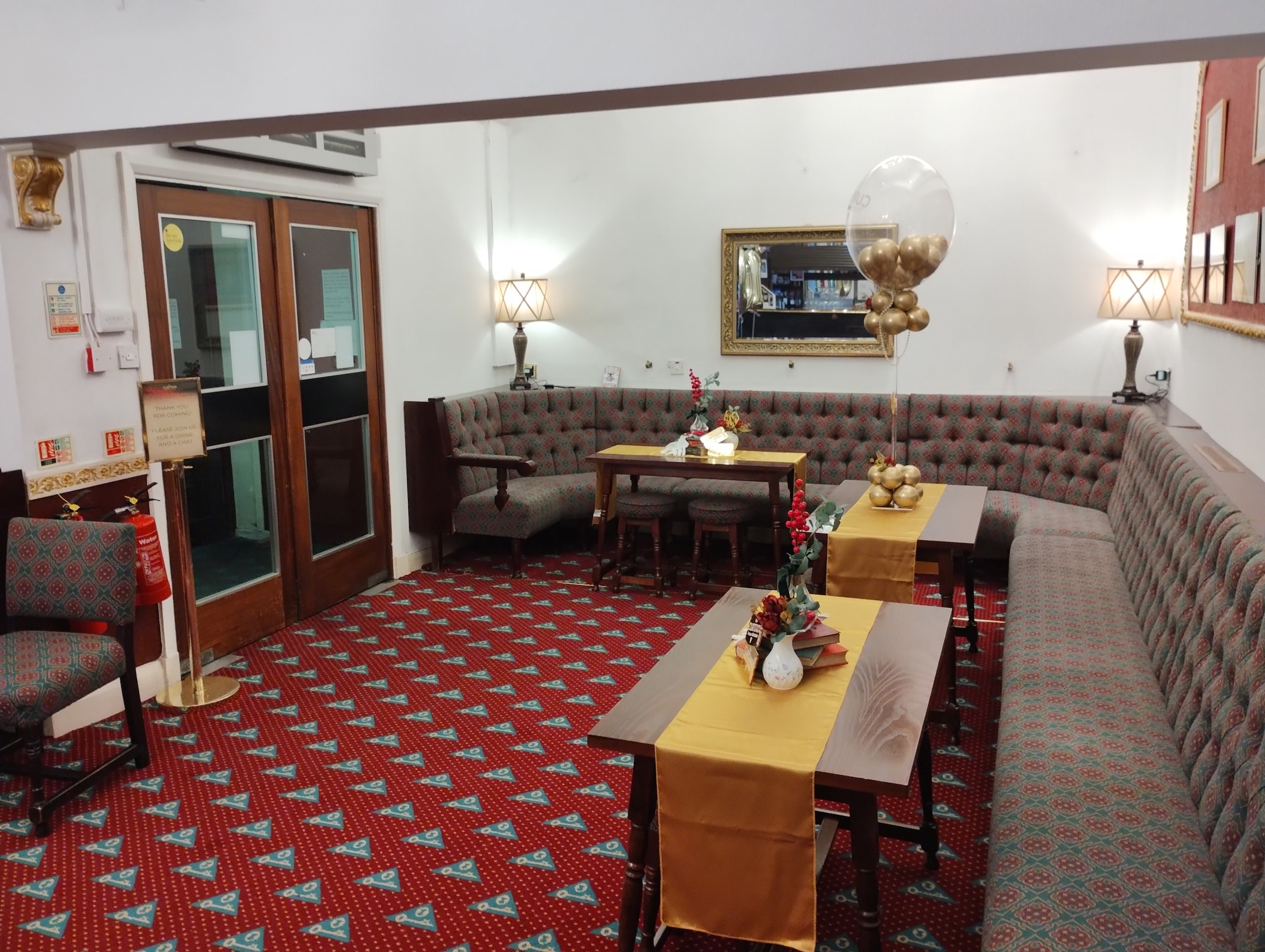 With everyone arriving in the wonderfully decorated foyer we enjoyed a free drink from the bar. It was soon apparent that all the warm greetings and smiles signalled that it was going to be a very enjoyable and special day. After a time to catch up we then enjoyed a superb buffet sourced from Park Farm, Walmersley.